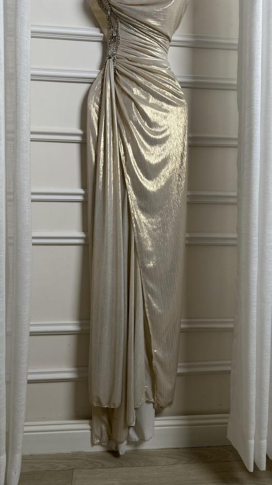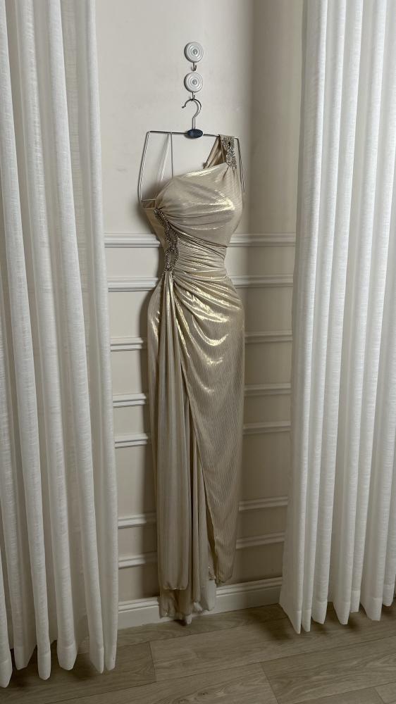 فستان لمسة الملوك هو تجسيد للفخامة والرقي، بتصميم يبرز أنوثتك بأسلوب استثنائي. يأتي بقماش لامع بلون ذهبي راقٍ يعكس الأضواء ببريق ساحر، وتفاصيل الكشكش الجانبية تضيف لمسة فنية تُبرز جمال القوام. يتميز بقصة الكتف الواحد المزينة بتطريز فاخر، تمنحك حضورًا ملكيًا يلفت الأنظار في كل مناسبة.