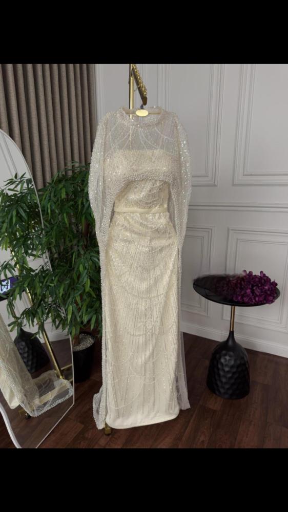 مواصفات الفستان:نوع الفستان : سهرة انيقنوع القماش : تل طريقة التفصيل : فستان سهرة انيق بذيل طويل مع خنق