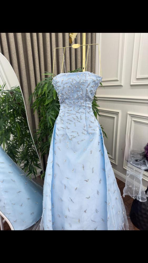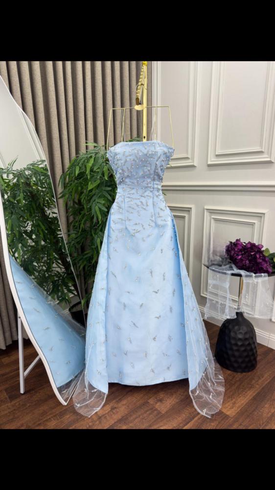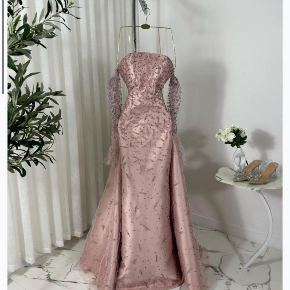 مواصفات الفستان:نوع الفستان : سهرة انيقنوع القماش : مكيادوطريقة التفصيل : فستان سهرة انيق بكمام خارجية شفافه مطرزه وذيل طويل مع تطريز كمبيوتر اصلي