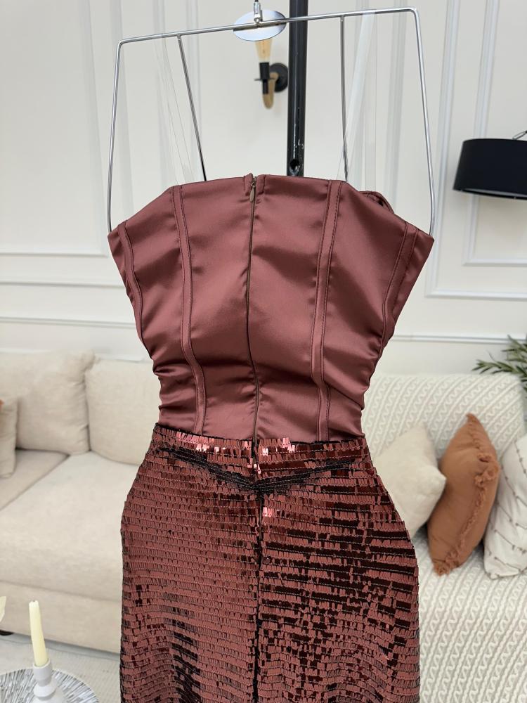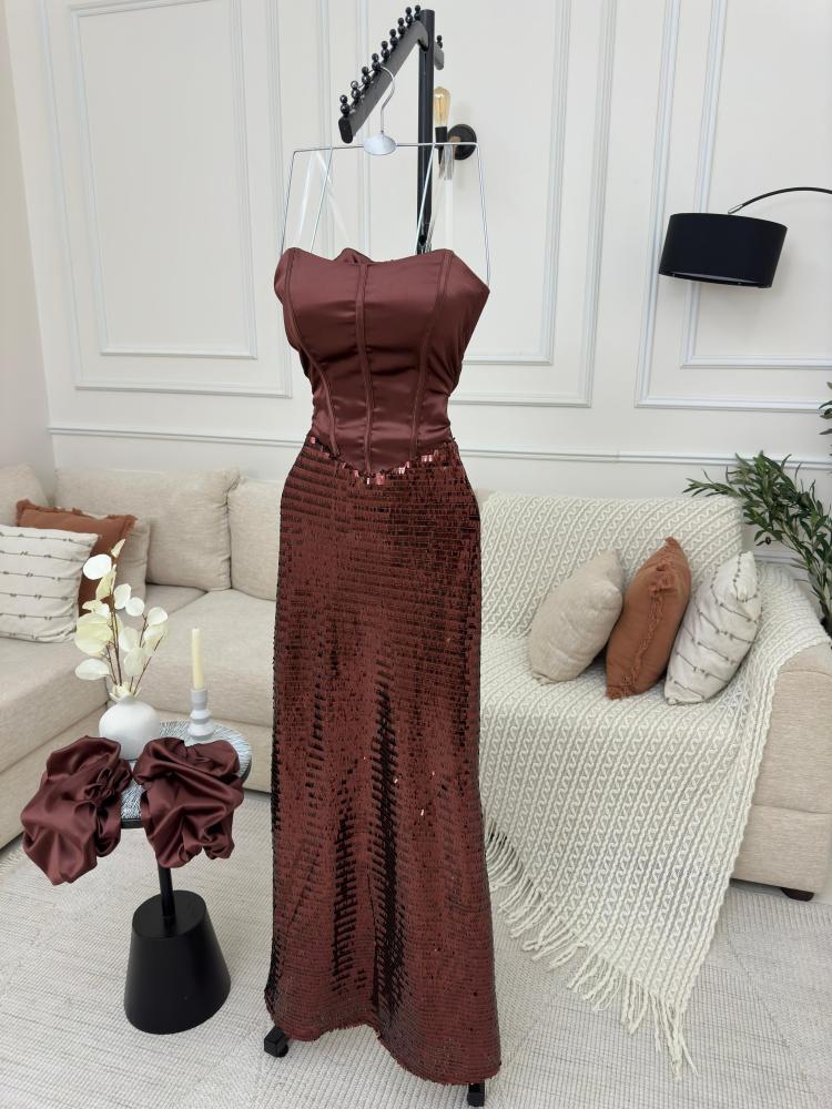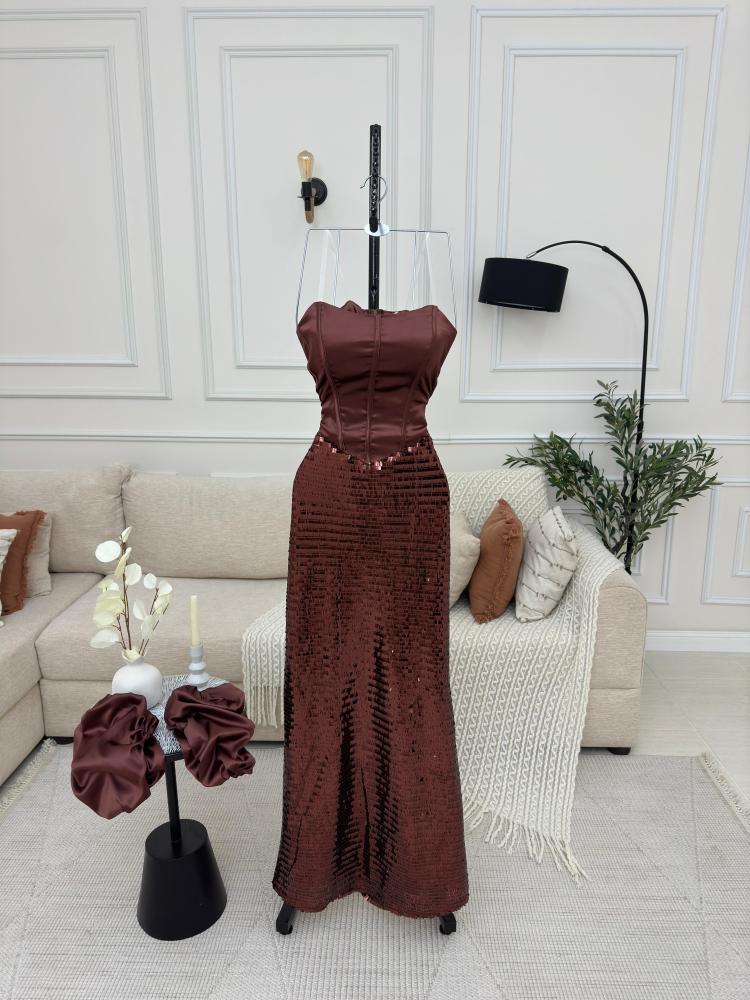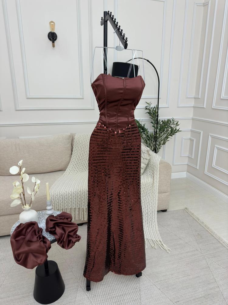 مواصفات الفستان:نوع الفستان : انيقنوع القماش : حريرهطريقة التفصيل : فستان سهرة ترتر بقصه جميله من ناحيه خصر اكمام خارجيه