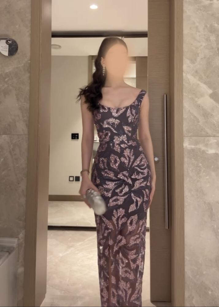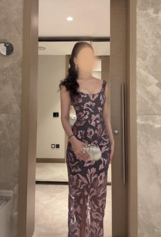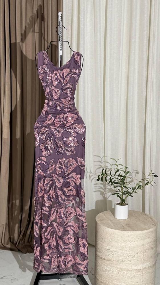 فستان سهرة أنيق يجمع بين الفخامة والأنوثة بتصميمه الطويل بلون بنفسجي راقٍ، مزدان بتطريزات براقة على شكل أوراق وزهور متداخلة باللون الوردي اللامع تضفي عليه لمسة من السحر والتألق. يتميز بقصّة ناعمة تُبرز القوام بانسيابية، مع قماش شفاف خفيف في الجزء السفلي يمنحه طابعًا راقيًا ومميزًا. خيار مثالي لإطلالة مسائية تلفت الأنظار وتُبرز ذوقك الراقي