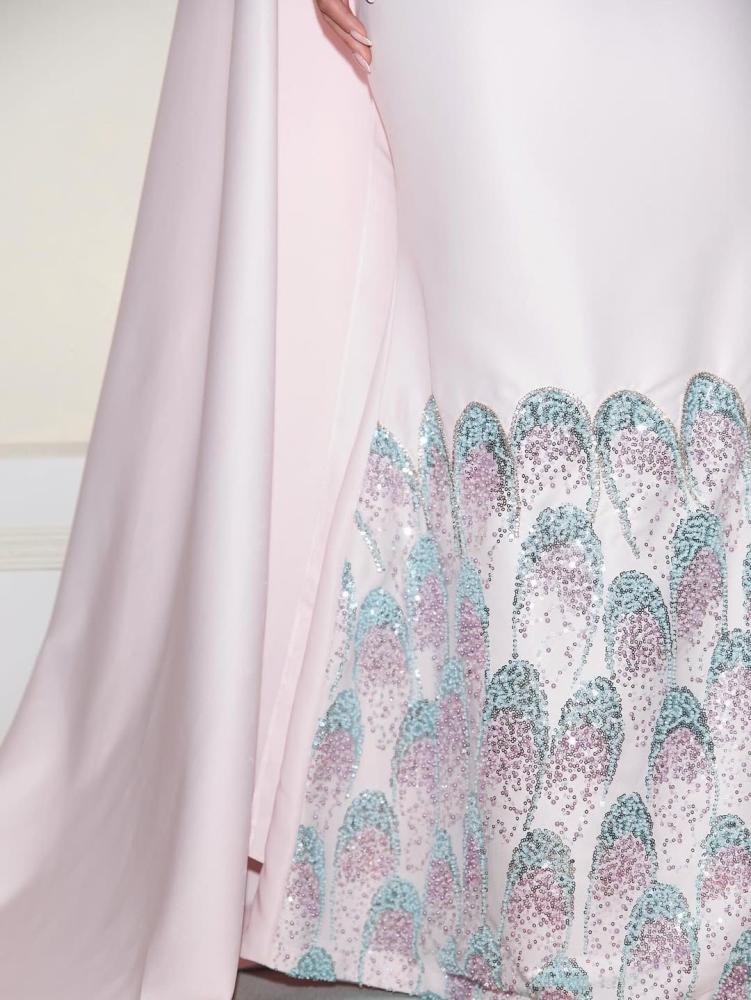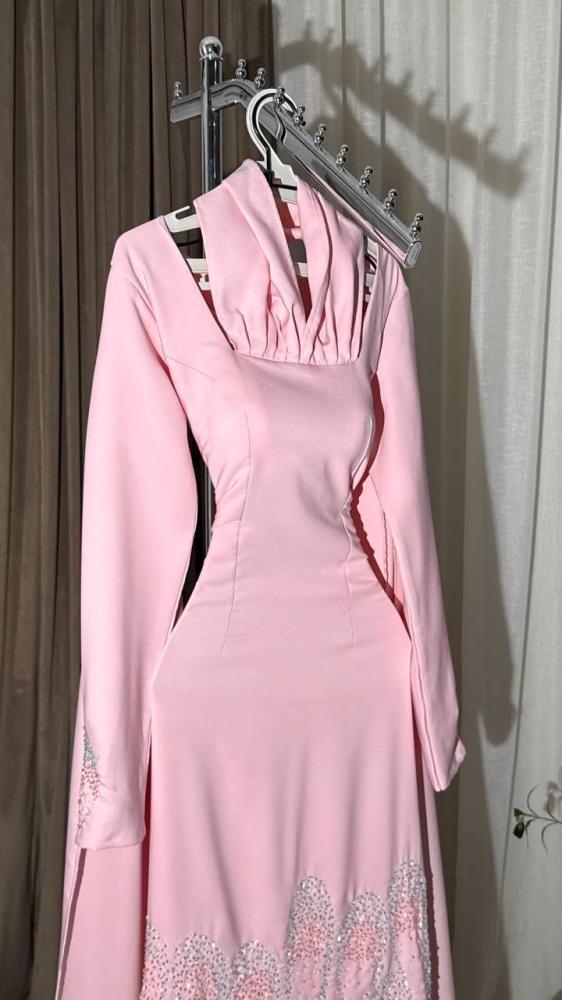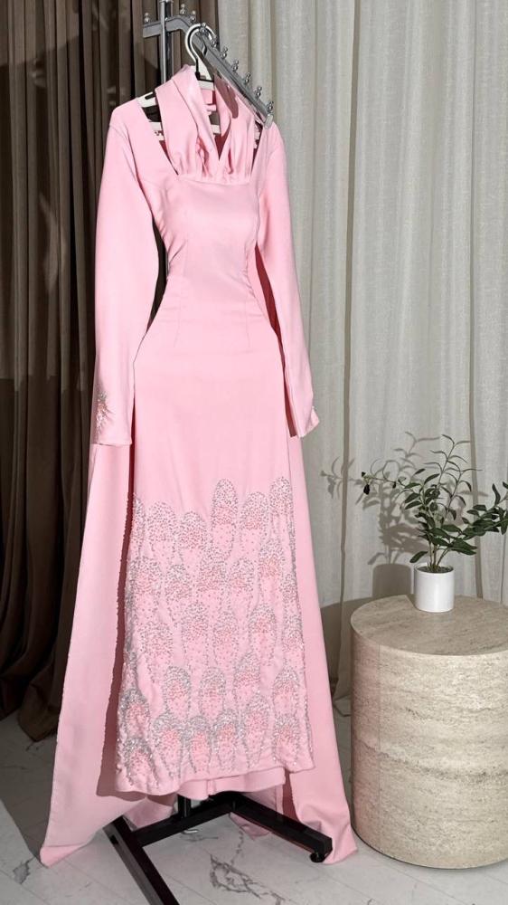 فستان أنيق بلون وردي ناعم، يتميز بتصميم راقٍ يجمع بين البساطة والفخامة. يأتي بقصة ضيقة تبرز جمال القوام، مع ياقة مميزة تضيف لمسة عصرية وفريدة. يتميز الفستان بتطريز فاخر على الجزء السفلي يمنحه بريقًا ناعمًا وأناقة لافتة، فيما تضيف الأكمام الطويلة والذيل الانسيابي إحساسًا بالفخامة والرقي. خيار مثالي للمناسبات الخاصة والإطلالات الراقية التي تجمع بين الأنوثة والجمال الهادئ