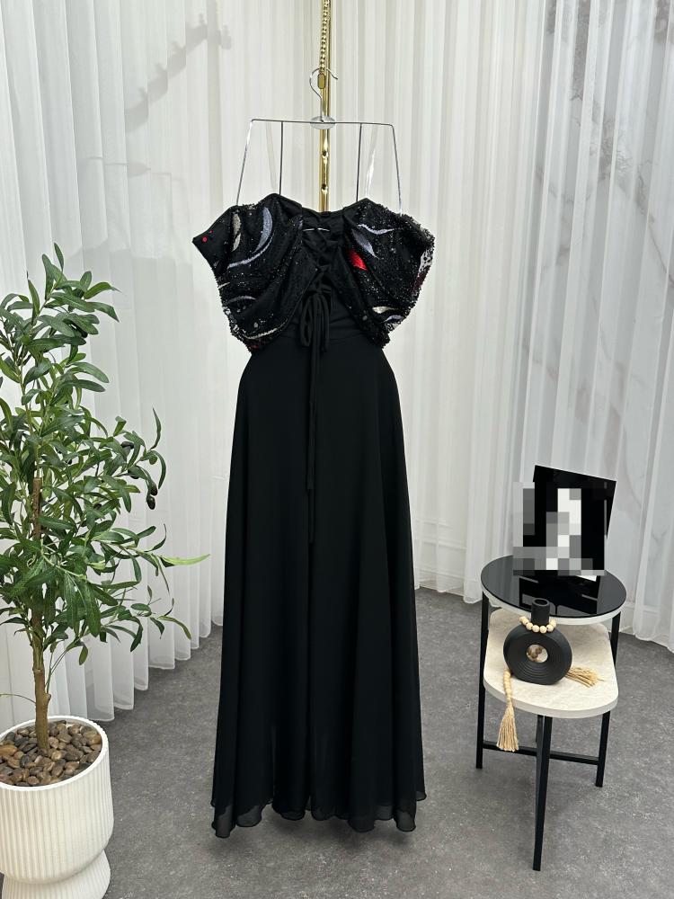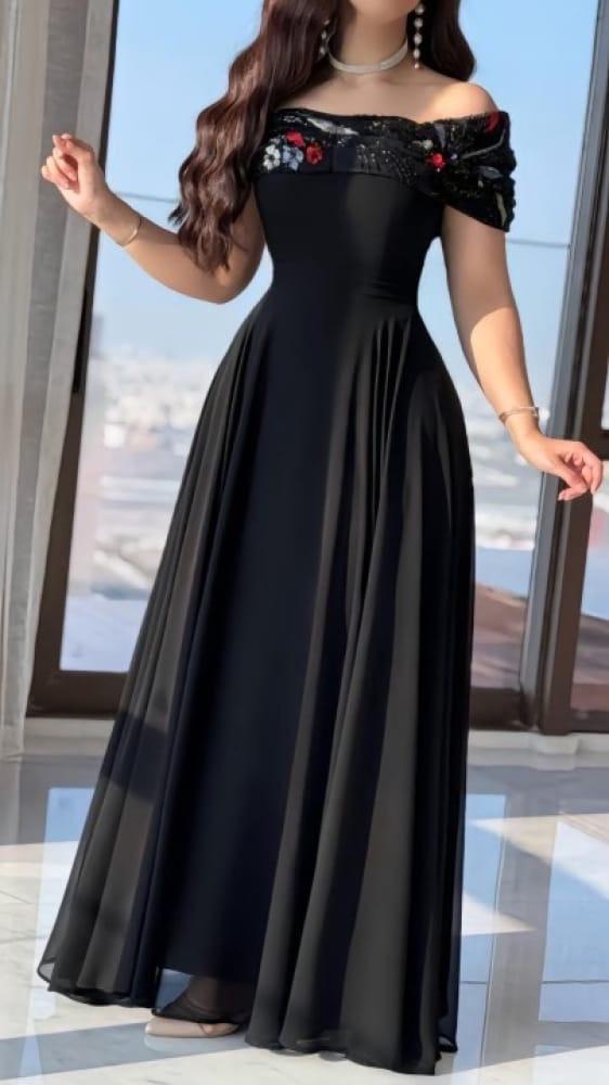 مواصفات الفستان:نوع الفستان : سهرة انيقنوع القماش : جورجيتطريقة التفصيل : فستان سهرة انيق مقدم صدر تطريز مع كسرات خفيفه اسفل فستان وربطات من الخلف
