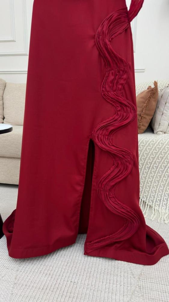 مواصفات الفستان:نوع الفستان : ناعمنوع القماش : باربي &جازارطريقة التفصيل : فستان ناعم علاقي اكمام طايحة مع فتحة من الامام وذيل متوسط الطول