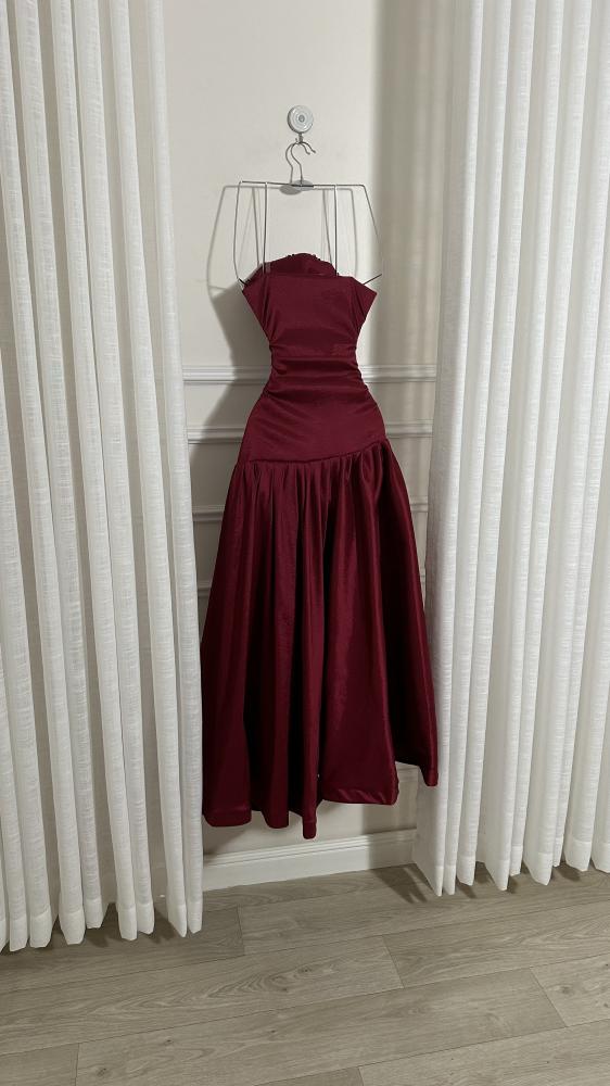- الخصر مزموم بطريقة أنيقة تبرز القوام وتحدد الخصر.