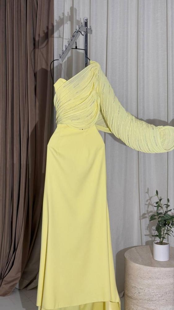 فستان انيق يجمع بين الفخامة والنعومة متوفر لونين الاسود والليموني